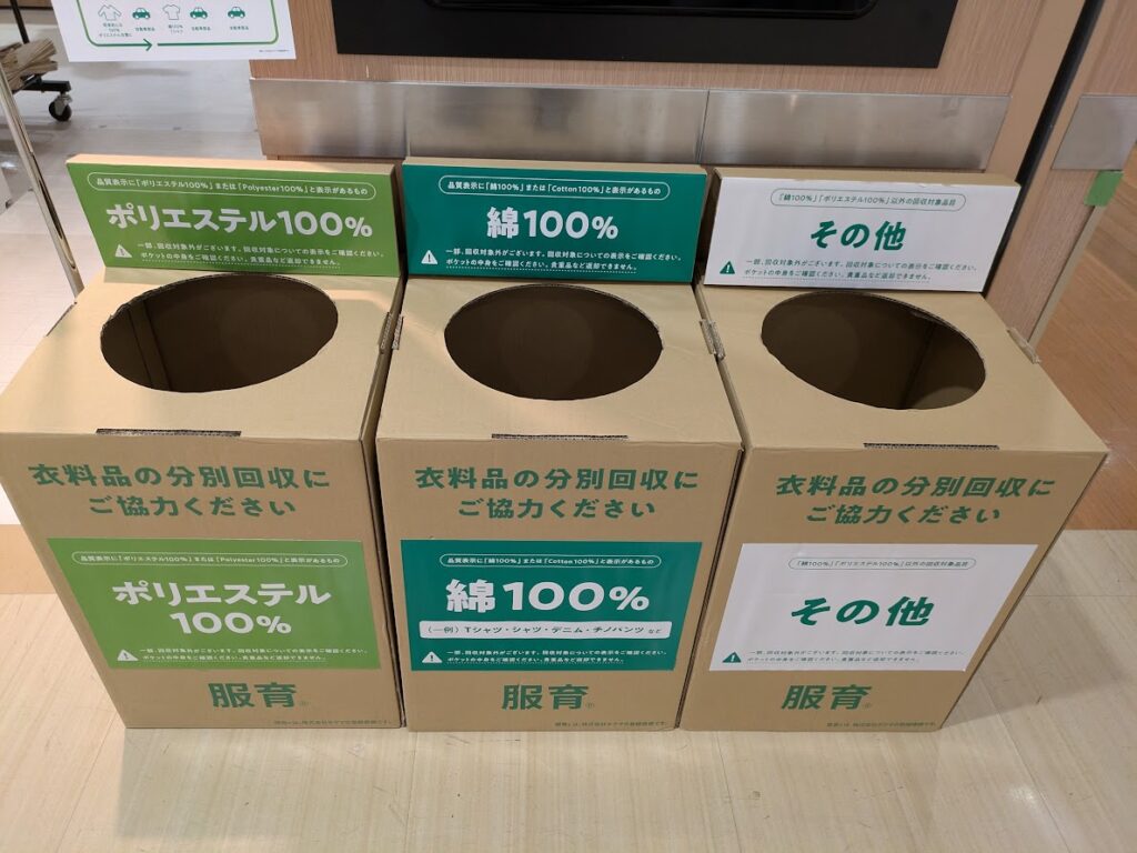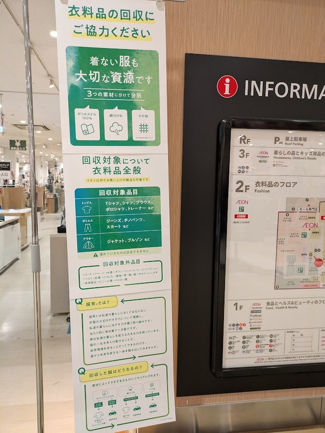 先日、イオンの店頭で見かけたのが衣料品の回収ボックスです。