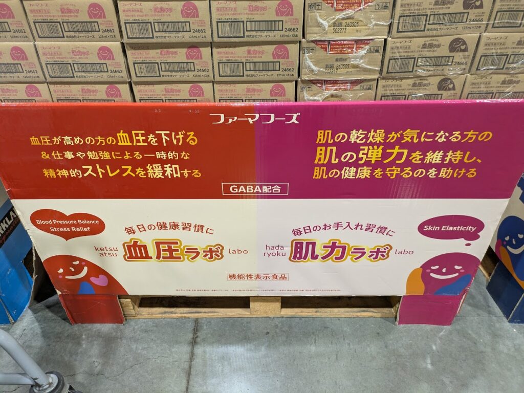 先日、コストコで見かけたのが、ファーマフーズが販売している機能性表示食品です。リラックスをもたらすというGABAが含まれている飲料です。それぞれの機能をもった3種類が販売されていました。
