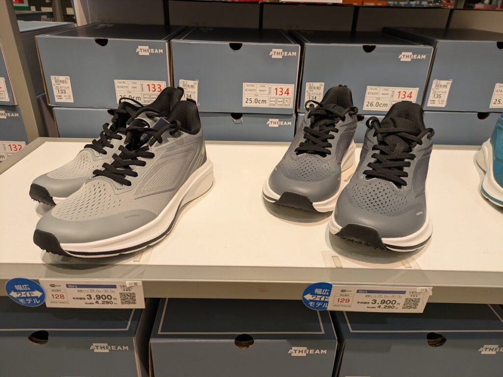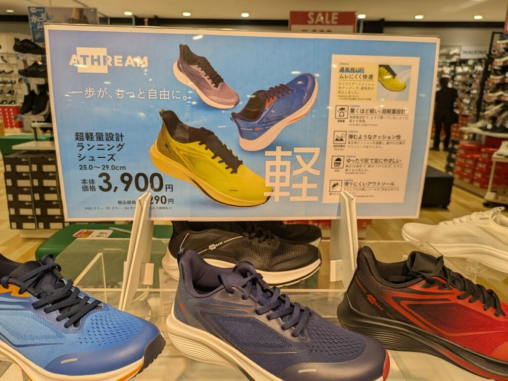 先日、靴専門店のアズビーで見かけたのが、お買い得シューズです。「ATHREAM」(アスリーム)ブランドのシューズです。