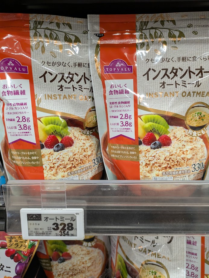 健康志向の中でオーツ関連商品が脚光をあびている。私も時々、食べています。自宅にあるのは、日本食品製造合資会社が出している「プレミアムピュアオートミール」です。パッケージ裏の表示には、1食30gあたり、111kcal、糖質は、17.28gになっています。