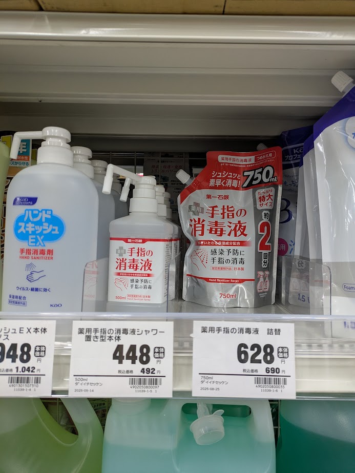 新型コロナが感染症の影響で商業施設の入口などでは、手指の消毒剤が見られた。現在では、一部の店舗では、なくなっているところも多い。また、個人宅では、以前は、購入して使用されている方も多かったと思います。ドラッグストアなどでは、入荷するとすぐに売れ品薄状態でした。