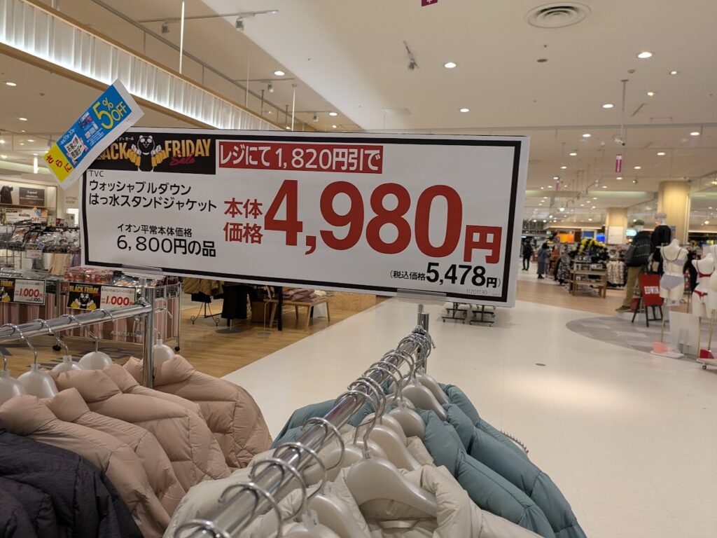 昨日からイオンの「Black Friday」が始まりました。夕方、イオンモール(レイクタウン)へ行って状況を見てきました。