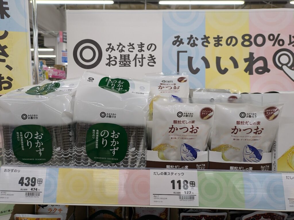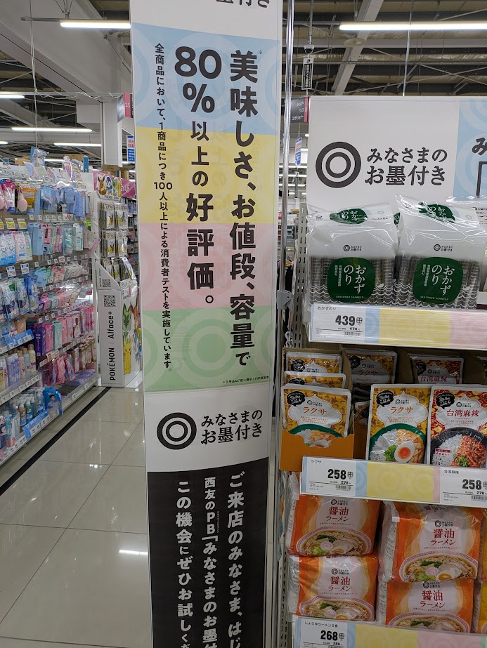 12月2日にトライアル西友のことを書きました。両社のPBが並んで陳列されているとのことでした。そして先日、トライアルの店舗へいったところ「みなさまのお墨付き」の一部商品を販売していました。