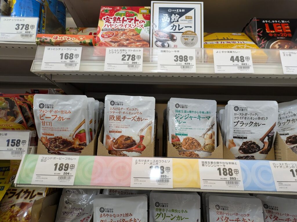 先日、トライアルの店舗へ行ったところレトルトカレーを中心に定番のゴンドラ内にみなさまのお墨付き商品が陳列されていました。