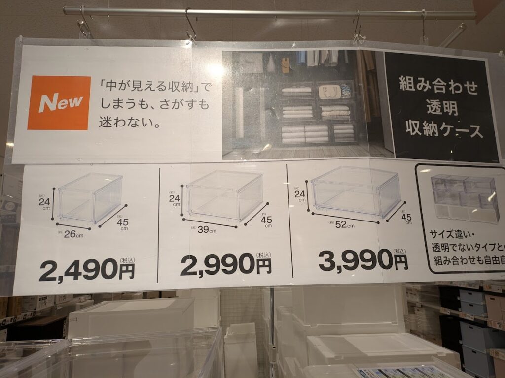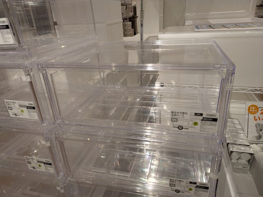 先日、ニトリで見かけたのが透明な収納ケースです。外から中身が一目瞭然でわかります。