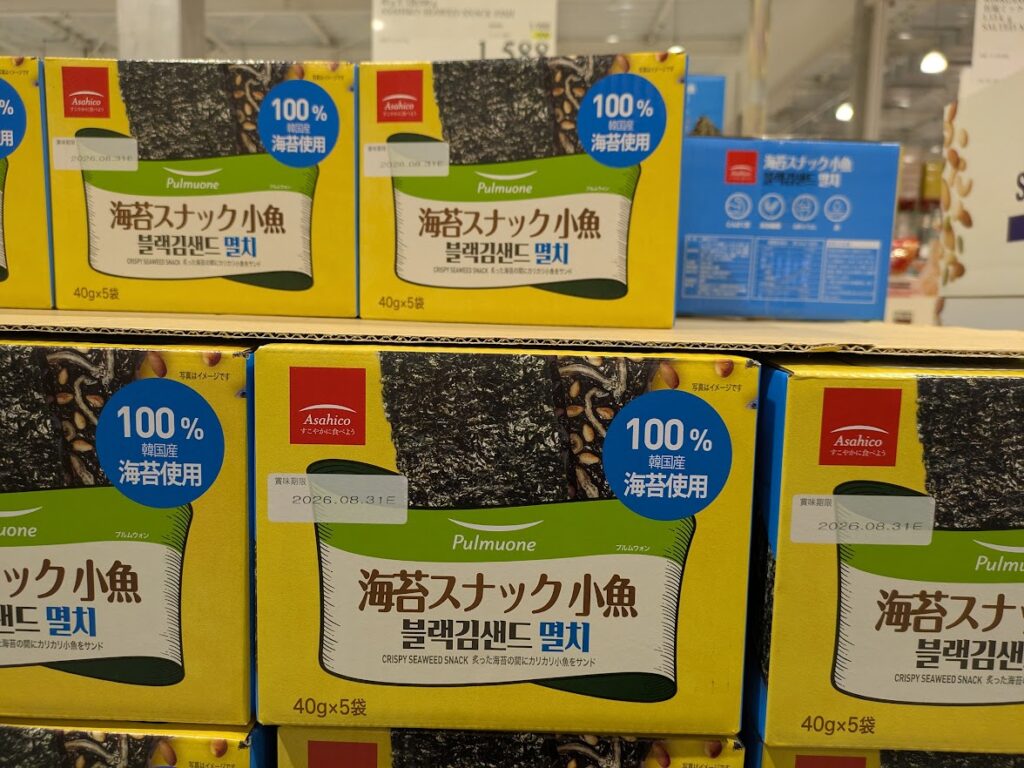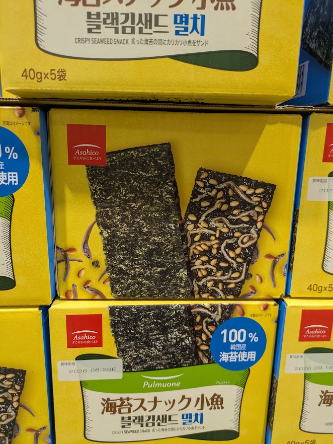 「海苔スナック小魚」です。40gが5袋入りで期間限定400円引きで1,588円です。