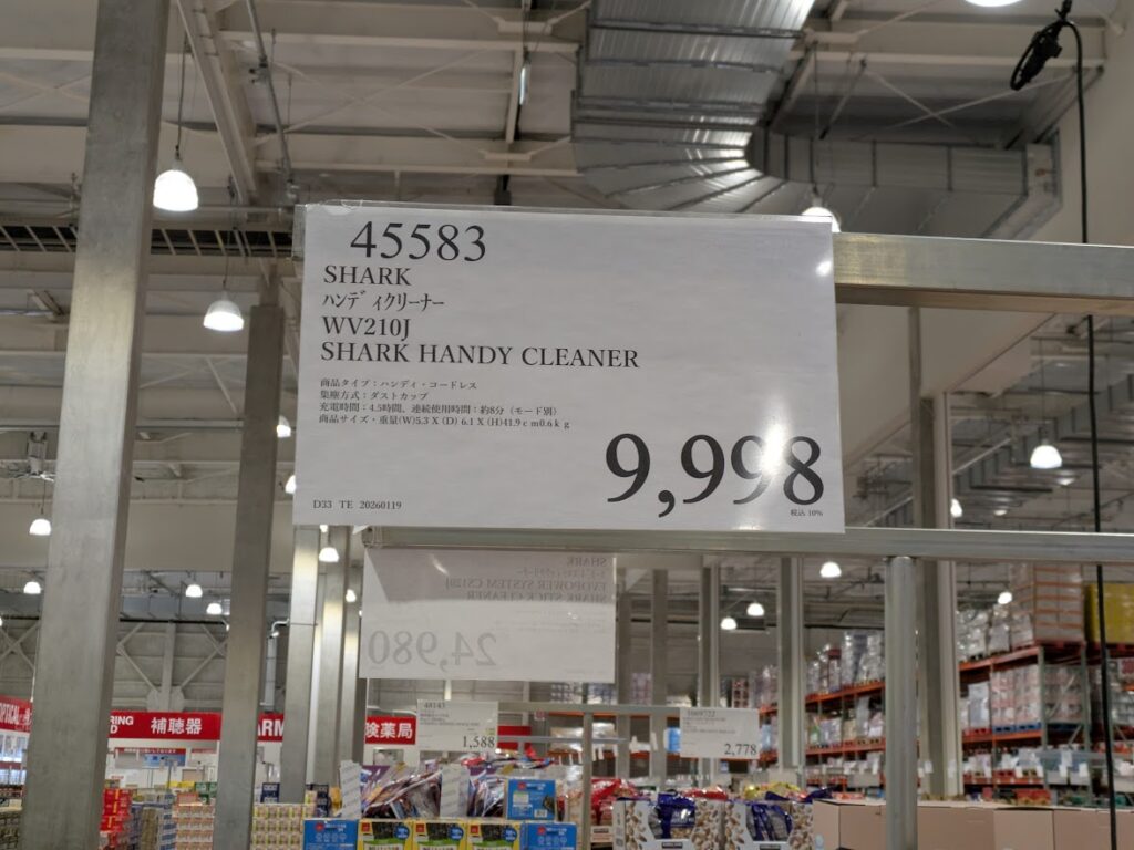 シャークのハンディークリーナーです。価格は、9,998円です。よくタテ型のクリーナーは見ますがこれは、ハンディークリーナーです。細かい所や車内の掃除に便利です。