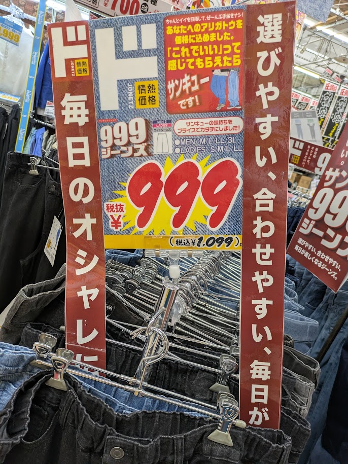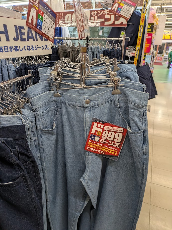 ニュースなどで話題になっているドン・キホーテの999円ジーンズ(税込1,099円)、先日、店頭で見てきました。