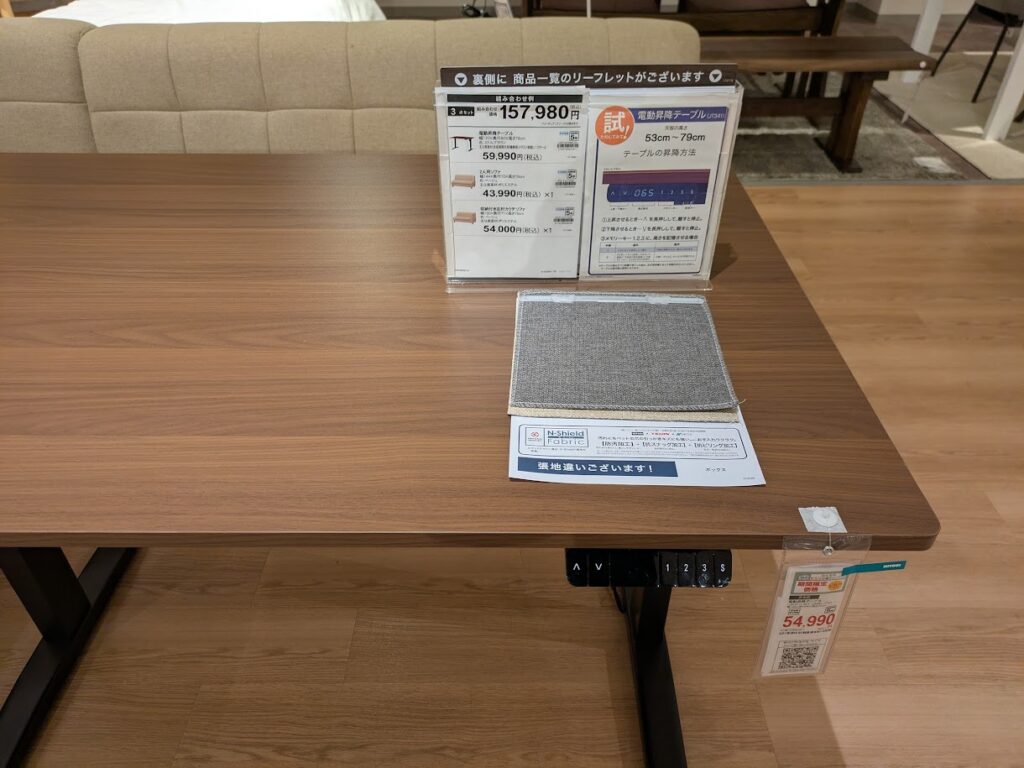 よく見本品は、「通電できるものは、通電する」などと言われます。ニトリでは、動くものは必ず通電していて試すことができました。よくできていると思います。やはりどのように動くかが確認できることは、重要です。また、お客様から呼ばれて、コンセントをつないだりする作業は、大変です。予めつないでいた方が、お客様は、すぐに試すことができ売上につながると思います。