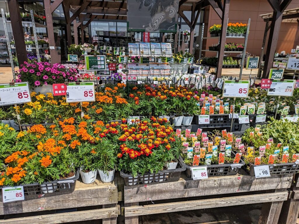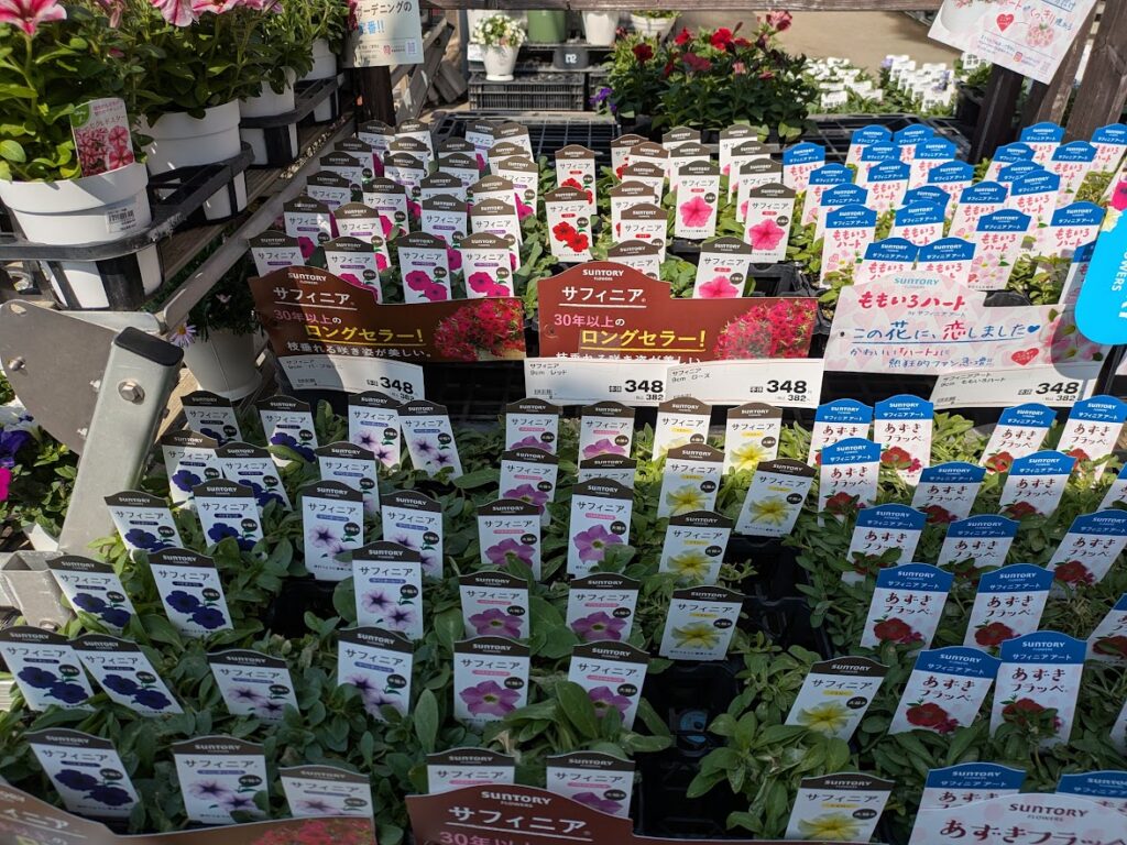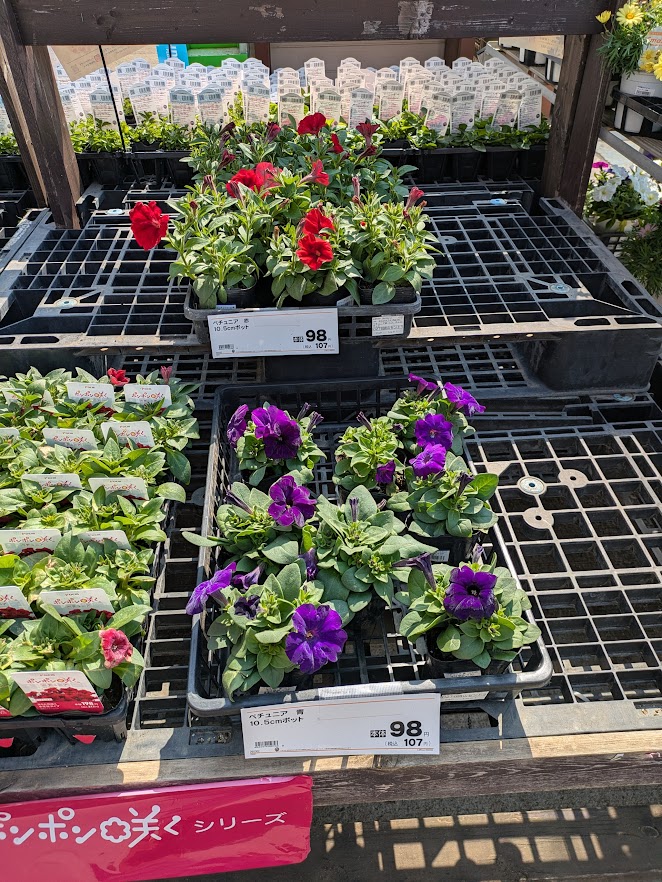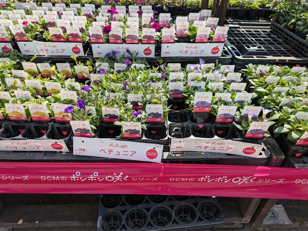 春のポット苗というと3つの代表的なものがあります。ペチュニア、マリーゴールド、ベゴニアです。これらを始め多くの花が、ホームセンターや園芸店で展開されます。ピークは、今からGWです。これに合わせプランター、用土、肥料などを売り込むシーズンです。
