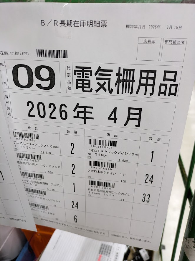 先日、ホームセンターへ行くと長期在庫(各社で言い方は、異なりますが)が、売場にありました。棚卸が、近いと思われました。(実際に数日後、棚卸が行われていました)