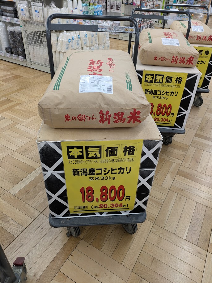 そのムサシですが、先日、店舗に行くと通路で新潟産米を販売していました。