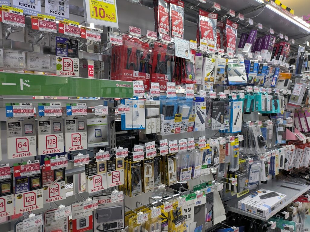 スマホ関連の商品を多く扱っています。SDカードやケーブルなどが、あります。