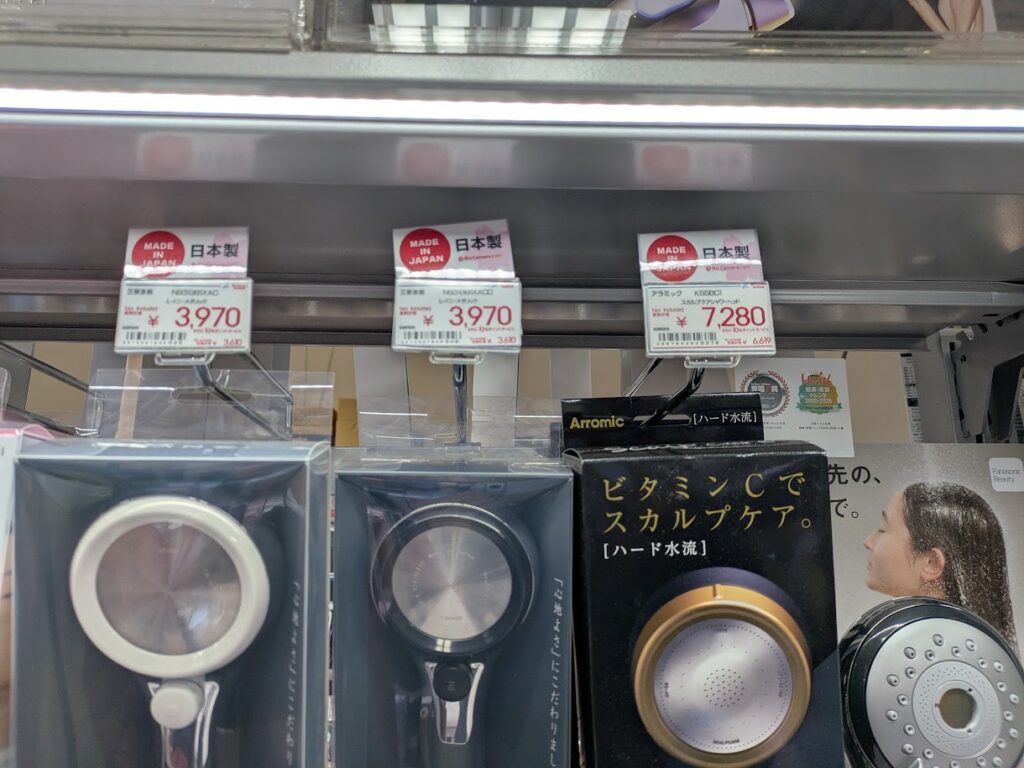 シャワーヘッドもあります。日本製の表示がプライスカードの上にあります。