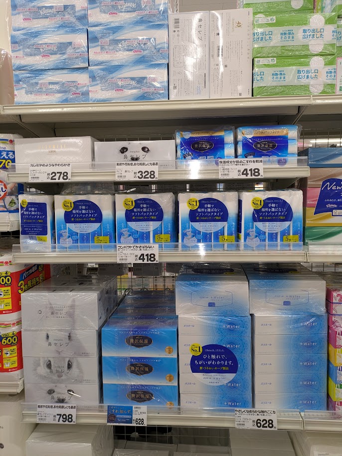 先日、保湿のポケットティッシュを求めようとドラッグストアに行った。ティッシュペーパーの売場を探したが見つからなかった。