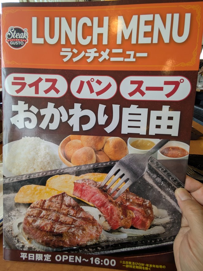 先日、久しぶりに「ステーキガスト」に行ってきました。最近は、このような店だと、まずは、「ブロンコビリー」に行ってしまいます。また、「フライングガーデン」も好きです。しかし今回は、ステーキガストに行きました。平日のお昼だったのでランチを注文しました。