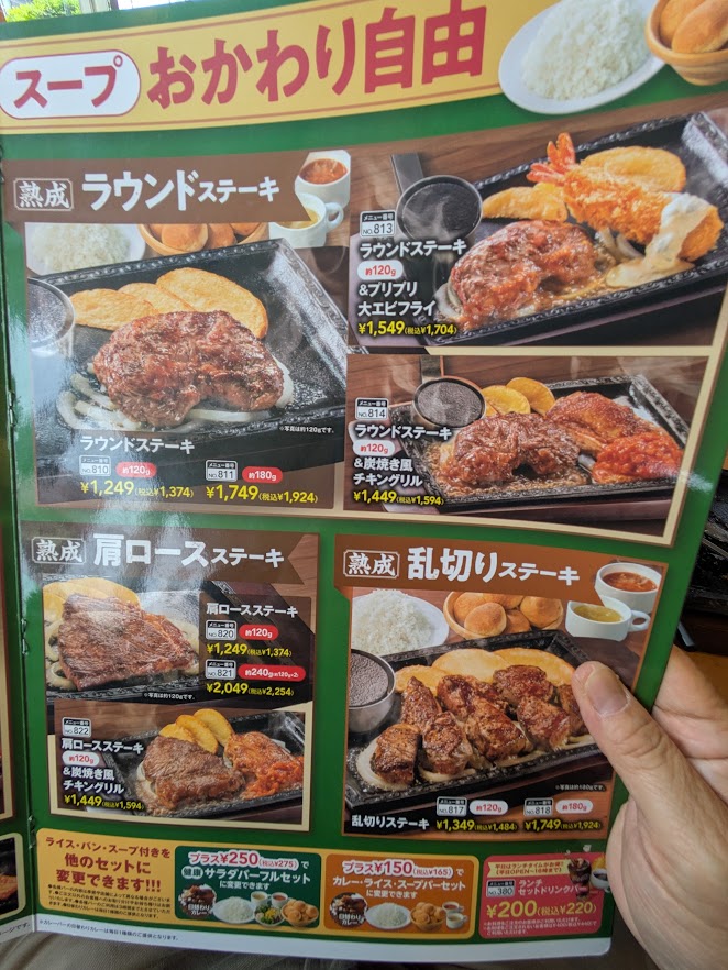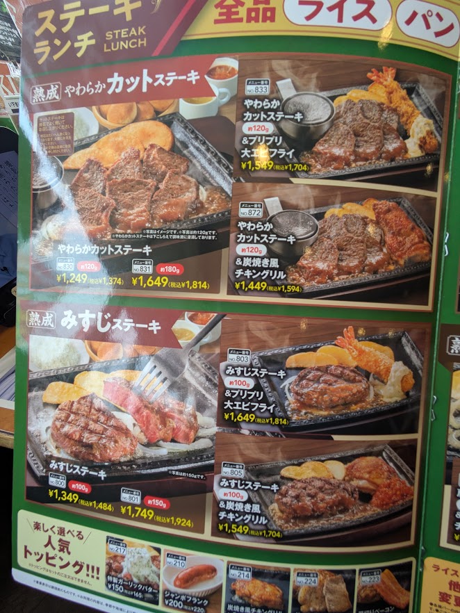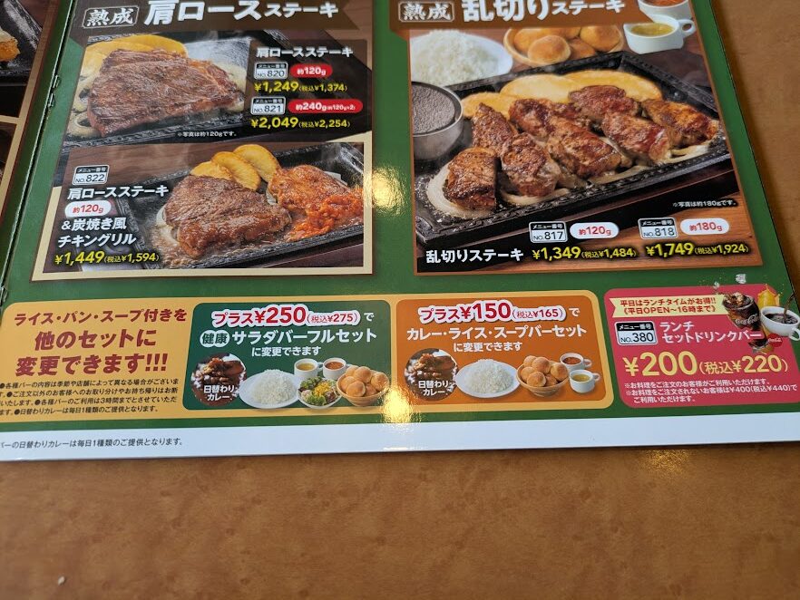 今回の感想ですが、食事は、美味しかったです。しかし、サラダですが、ブロンコビリーと比べてしまうと少し寂しい気がします。また、ドリンクバーの種類も少ないと感じました。ステーキ系のファミリーレストランも多くの企業が、存在します。その中で選ばれるのは、とても大変だと思います。